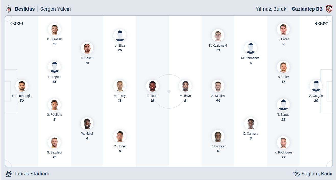 Besiktas là một trong vài đội mạnh của giải đấu Thổ Nhĩ Kỳ, họ đứng thứ tư mùa trước. Mùa giải năm nay đội bóng của HLV Sergen Yalçın muốn làm tốt hơn nhưng mọi thứ đang không như đội bóng này mong muốn, họ đứng thứ 6 sau 14 vòng đấu và chỉ thắng 2/5 vòng đấu gần đây. Đây rõ ràng không phải vị trí khiến cổ động viên hài lòng và các cầu thủ Besiktas cần giành chiến thắng ở trận đấu sắp tới để có vị trí tốt hơn. Gaziantep không phải đối thủ được đánh giá cao và nhiều khả năng Besiktas sẽ có được điều mình cần.